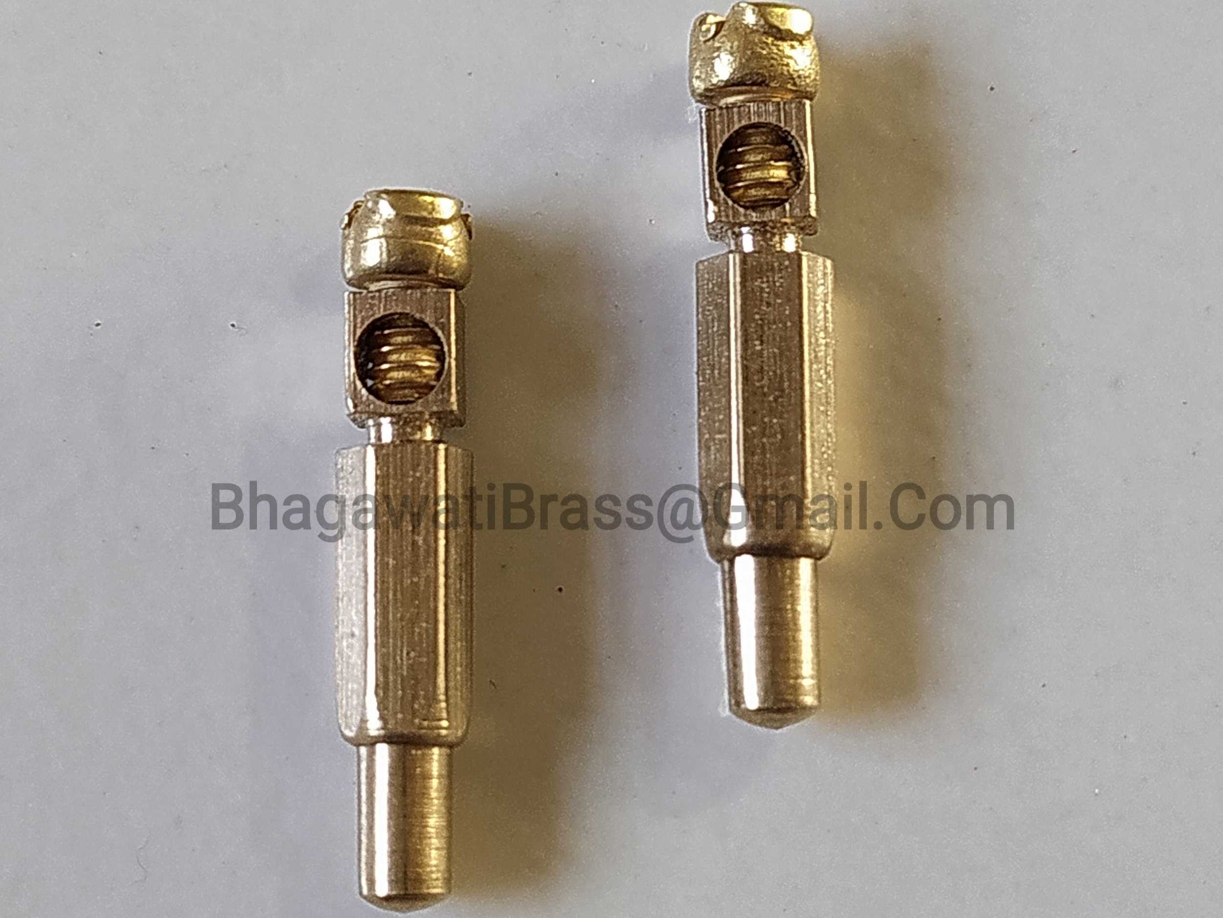 Shree Bhagavati Brass Product  manufacturing standard quality Brass Electrical Components and Brass Electrical Fitting Parts, Electric brass lump/bulb holder part, brass plug pin and socket pin, brass fuse part, brass charger part, brass mixture part, brass meter part, brass earthling part, brass male pin and female pin.